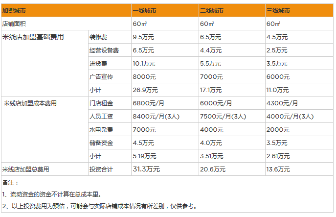加盟一個品牌的話,我們需要向品牌的總部繳納品牌的加盟費、品牌管理費、品牌保證金,而加盟米線品牌的話大概需要1-10萬之間不等,因為各個米線的品牌不同,那么相關的費用也就不同,但是只要合同滿期之后就會原數奉還。