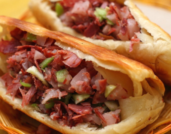 正宗驢肉火燒是將新鮮驢肉先以大火后以溫火燉,配以近20種調(diào)料,烹煮時間長,熟度透徹,色澤紅潤,肉香而不柴,香味綿長,酥軟適口。據(jù)醫(yī)書載:驢肉補血、補氣、補虛,阿膠滋陰補血、補肺潤燥。可見驢肉不僅味道鮮美,還有保健功能。近代醫(yī)學(xué)研究,驢肉是低脂肪、高蛋白食品,且鈣、磷、鐵含量也較高。驢肉火燒在北京、天津和河北等地餐飲市場享有盛名。