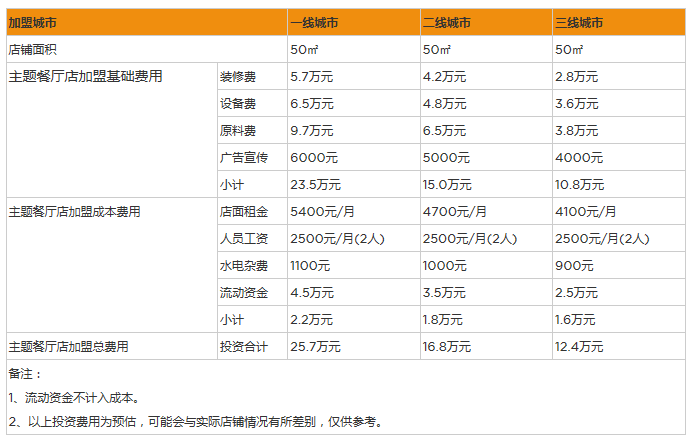 開家主題餐廳投資一般需要多少錢?4大成本總投資12萬元