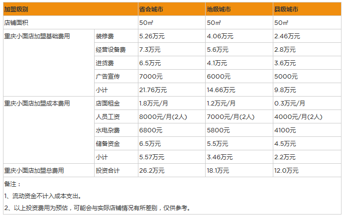 開家重慶小面店投資一般需要多少錢?50㎡最少投資12萬元起