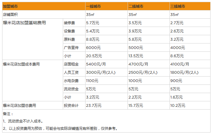 6、員工工資:爆米花店通常比較忙碌,普通員工的工資大概在3000元左右,一家35平米大小的爆米花店,至少需要2個以上的員工,那么每個月的員工工資支出都在0.6萬元以上。