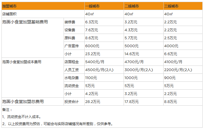 開家泡面小食堂投資一般需要多少錢?40㎡投資8萬,詳情數據分析