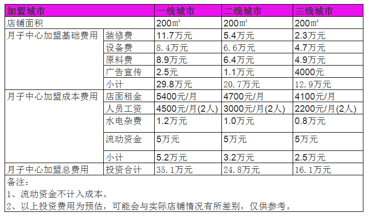 開家月子中心投資一般需要多少錢?35萬元開店數(shù)據(jù)分析
