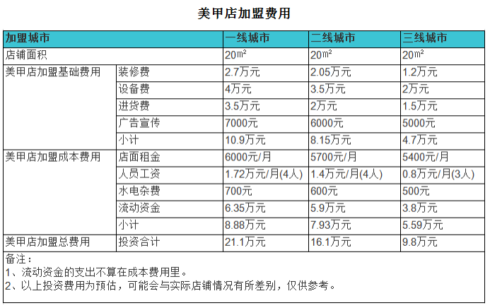 有人只需要花2-3萬就可以開一家日式美甲店,同樣規(guī)模的日式美甲店,有人要花費(fèi)10萬甚至以上。所以,開店前期做投資預(yù)算非常重要。