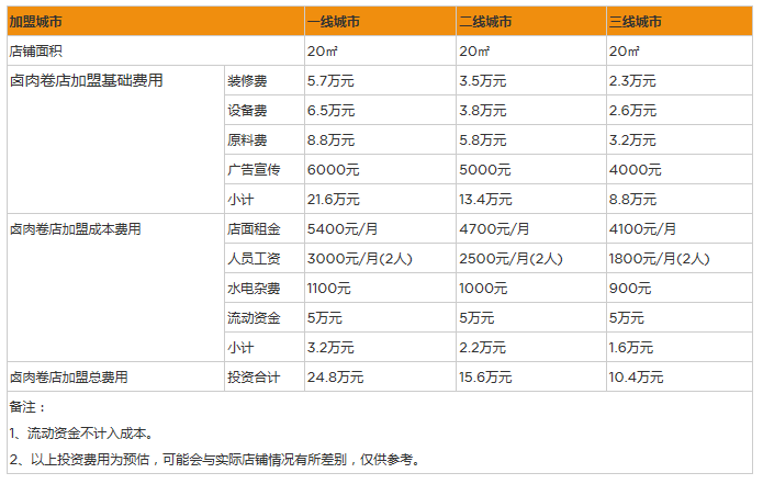 開家鹵肉卷店投資一般需要多少錢?20㎡投資11萬,詳情數據分析