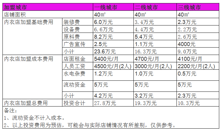 而且通常情況下投資10萬元左右就能開起一家內衣店了。